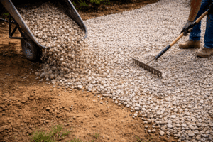 The exact coverage also depends on the stone’s size and shape. Smaller, more compact materials like pea gravel will cover more area than larger, irregular stones that leave more gaps. To calculate your needs, multiply your project area’s length by its width to find the square footage. Multiply that by your desired depth in inches, then divide the total by 324 to find the cubic yards required.